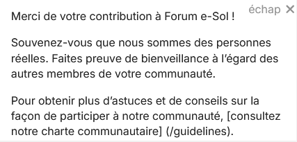 Mais ça me fait me poser une question : est-ce qu’on distingue la charte e-sol (la charte sur laquelle on a bossé fin janvier, qui cadre l’ensemble du réseau) des guidelines pour utiliser le forum ?