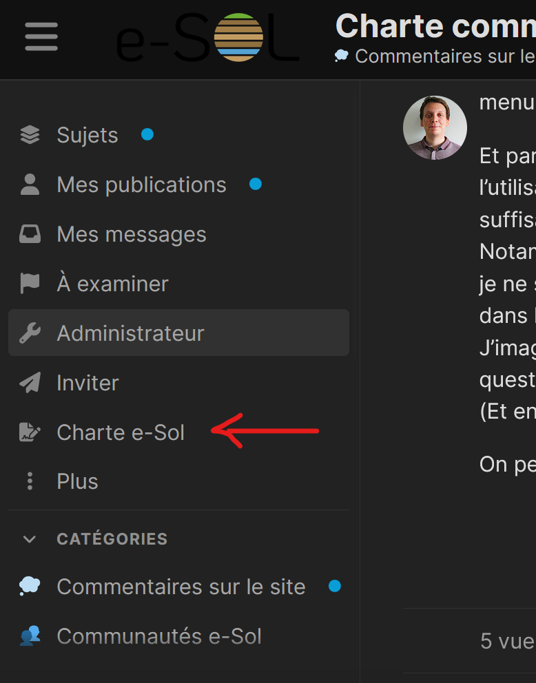 J’ai ajouté un lien vers une nouvelle catégorie de sujets, dédiée à la Charte d’e-Sol. Dites-moi si ça vous convient ou pas ^^